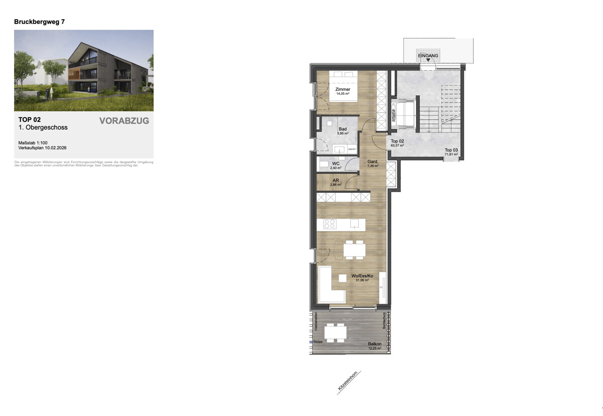 Op het 12 m² grote balkon geniet u van ideale omstandigheden voor ontspannen uurtjes in de buitenlucht – of het nu gaat om ontbijt in de ochtendzon, gezellige avonden met familie en vrienden of rustige momenten in de ligstoel. Dankzij de ligging op het zuiden profiteert de gehele keuken-woon-eetkamer van optimale lichtomstandigheden en een bijzonder open, lichtdoorlatend ruimtegevoel.