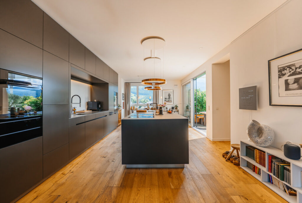 – Flächenbündige Türen und individuell gefertigte Tischlermöbel