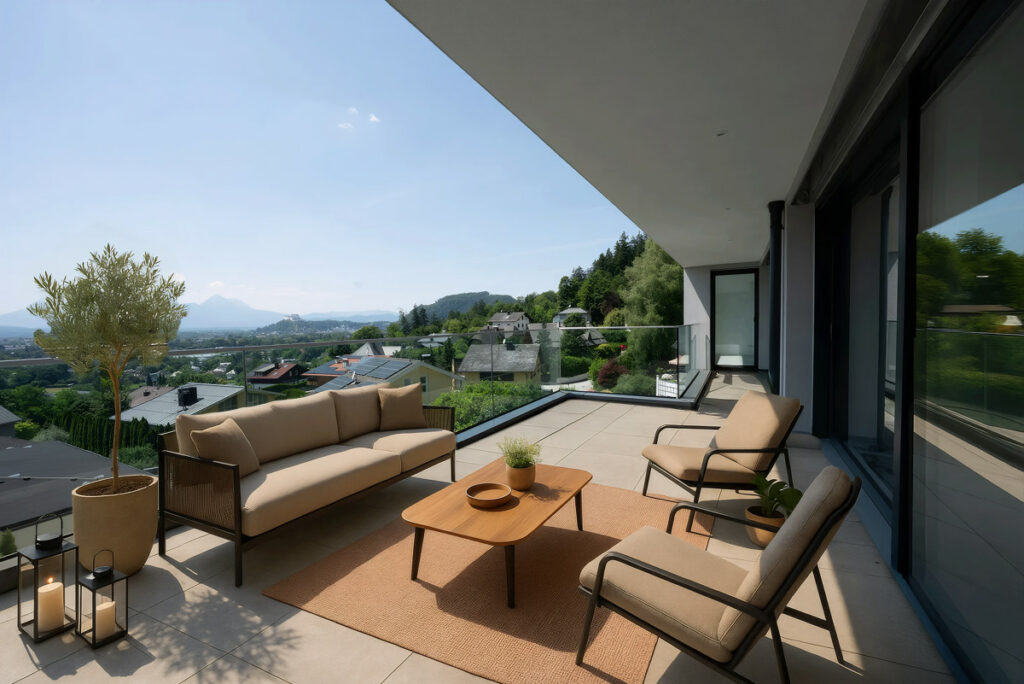 Die Top 2 ist als Penthouse-Maisonette konzipiert. So gibt es neben einer großen Terrassenfläche im Erdgeschoss auch noch eine Terrasse im Obergeschoss. Die Aufteilung ist funktionell und gut durchdacht. Der großzügig gestaltete Wohn-Küchen-Essbereich ist das Herzstück der Wohnung. Eine praktische Speisekammer, ein Abstellraum, ein Duschbad und ein Gästezimmer befinden sich ebenfalls auf der Etage. Weitere 2 Schlafräume und ein modernes Bad befinden sich im Obergeschoss. Genießen Sie den herrlichen Festungsblick von den Wohn- und Schlafräumen ebenso wie von der Terrasse.