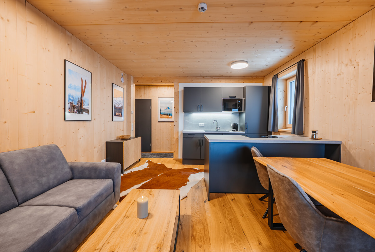Im beliebten Alpin-Style erwarten Sie warme Holzböden mit Fußbodenheizung, hochwertige Materialien und ein modernes und gleichzeitig gemütliches Interieur.