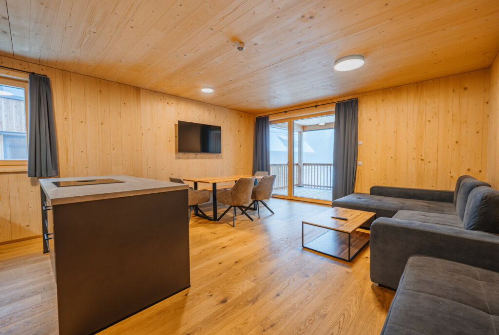 Im beliebten Alpin-Style erwarten Sie warme Holzböden mit Fußbodenheizung, hochwertige Materialien und ein modernes und gleichzeitig gemütliches Interieur.