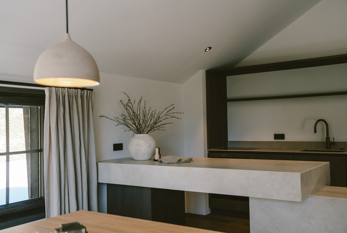 • Edles Interieur: Leinenvorhänge, Bodendielen in Eichenholz geräuchert, Edelstahlakzente und maßgefertigte Möbel von regionalen Handwerkern