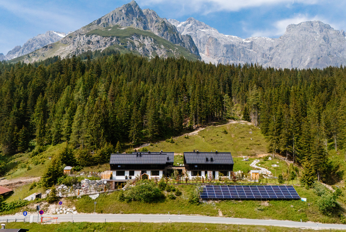 Auch Nachhaltigkeit wird im Birgkar großgeschrieben: 200 m² Photovoltaik, Ringkollektoren für Solar- und Erdwärme sowie E-Ladestationen für umweltbewusstes Reisen sind Teil des innovativen Energiekonzepts.