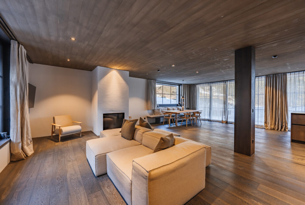 Die Lodge Bergkiefer ist in in sanften Naturtönen gestaltet und erstreckt sich auf zwei Etagen mit einer Wohnfläche von 174,05 m². Es erwartet Sie ein elegantes Masterbedroom mit offenem Badezimmer und XL-Dusche, ein weiteres Schlafzimmer mit Bad en Suite sowie ein privater Garten mit einem Hot-Pot. Hier genießen. Sie pure Entspannung und den atemberaubenden Blick auf die umliegende Bergwelt.