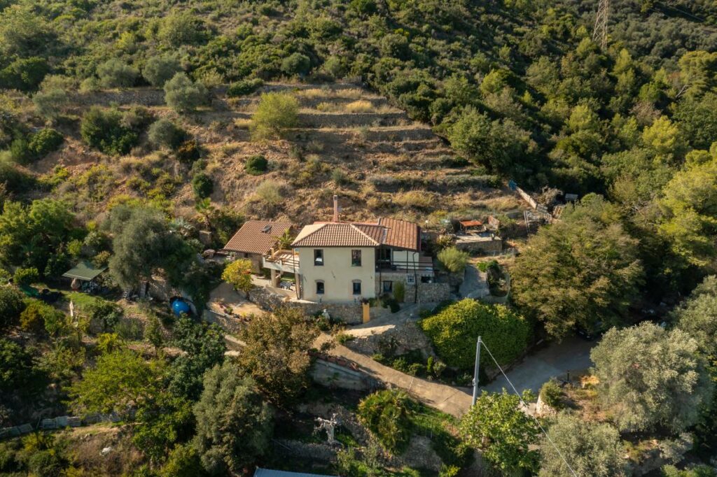 Das Anwesen erstreckt sich mitten im Grünen und ist in etwa von 3 Hektar Land umgeben, das heute teilweise als Garten genutzt wird und mit Obst- und Olivenbäumen bepflanzt ist. Der Außenbereich bietet noch ein enormes Potenzial, es besteht zum Beispiel die Möglichkeit, einen großen Panorama-Pool zu bauen.