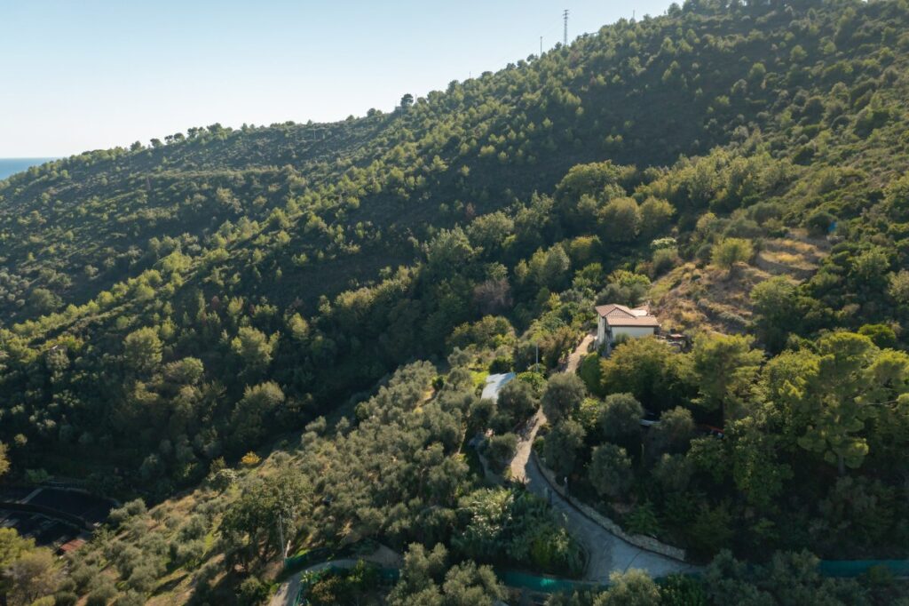 Umgeben von einem großen Park, komplett terrassiert mit typisch ligurischen Trockenmauern, befindet sich diese Villa Italien mit herrlicher Aussicht über die gesamte Stadt Arma di Taggia und das Meer (Entfernung zum Meer: 3 km).