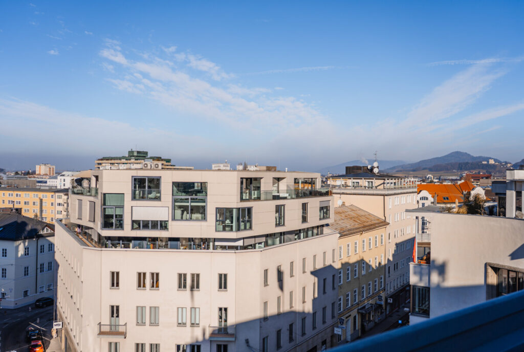 Diese außergewöhnliche Penthousewohnung erstreckt sich über 2 Etagen und eröffnet ein Wohnerlebnis der besonderen Art. Der unverbaubare Blick auf die historische Salzburger Festung mit Dom sowie auf die Dächer der Stadt und die umliegenden Stadtberge verleiht dieser Immobilie eine Seltenheit, die ihresgleichen sucht. Bodentiefe Fenster holen das Panorama direkt in den Wohnraum und schaffen eine eindrucksvolle Verbindung zwischen Innen- und Außenwelt.