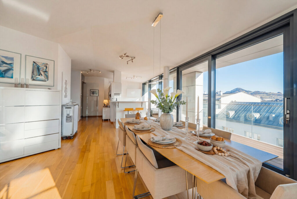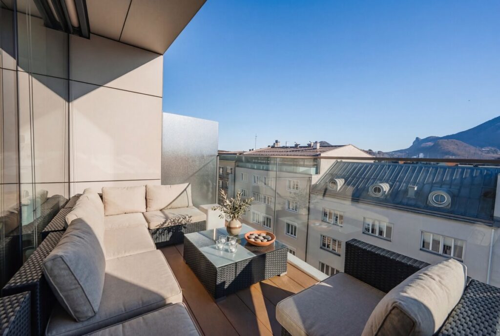 Die Penthouse Maisonette befindet sich mitten im Herzen von Salzburgs lebendigem und wunderschönen Stadtteil „Andräviertel“.