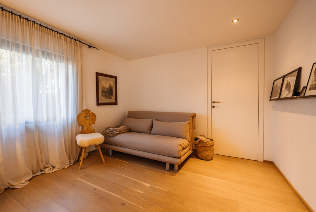 Auf der obersten Wohnebene befindet sich eine offene Galerie, die sich ideal als Leseecke, Rückzugsort oder kleiner Arbeitsplatz eignet. Von hier aus genießt man einen schönen Blick hinunter in den Wohnbereich sowie hinaus in die Natur.