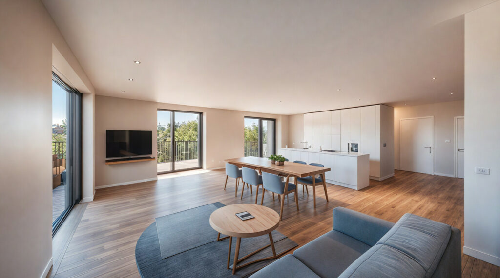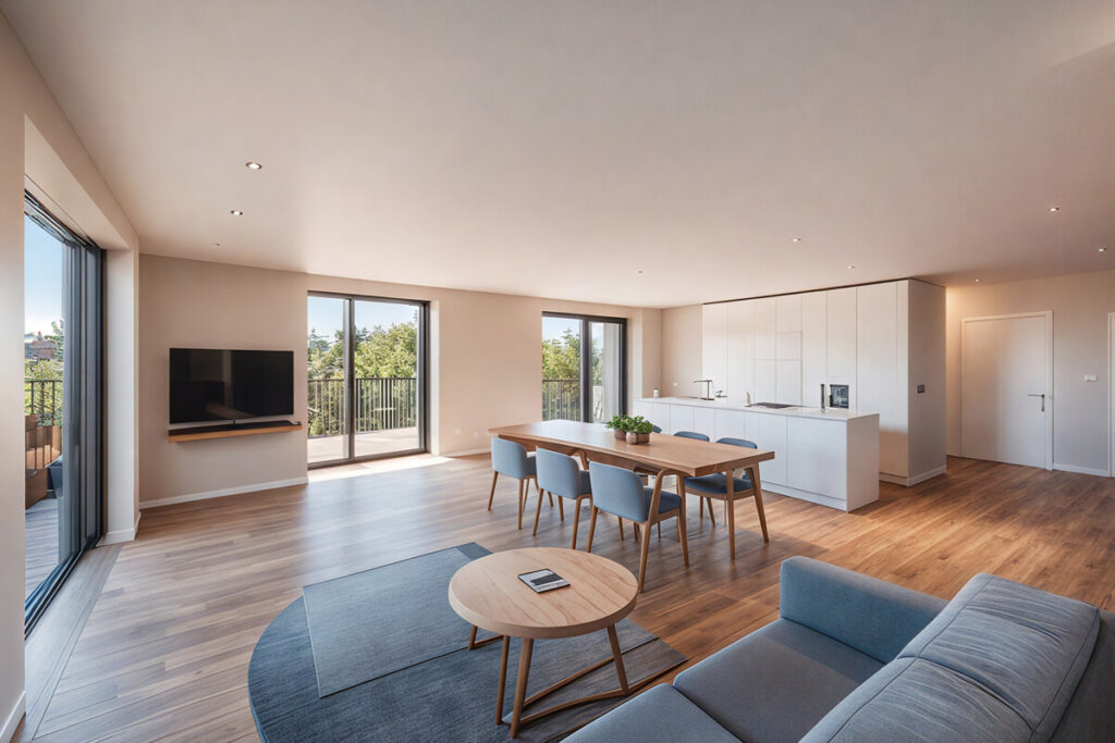 Alle Wohn- und Schlafräume sind mit einem exklusiven Echtholzparkett in Eiche ausgestattet.
