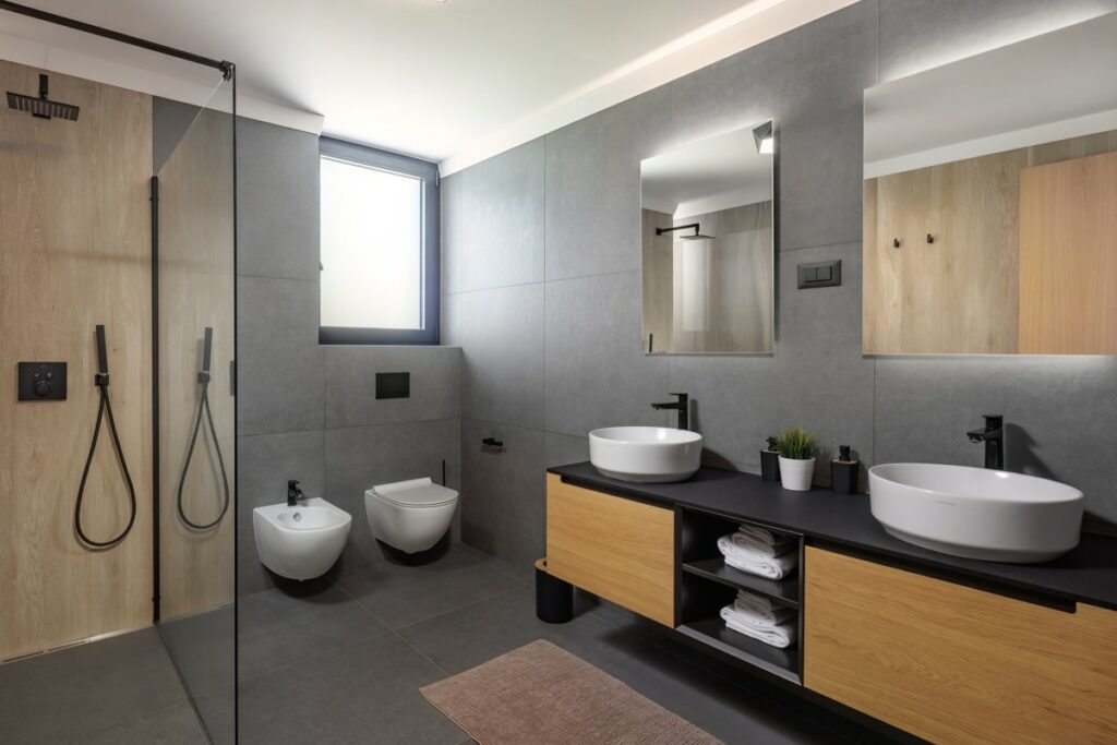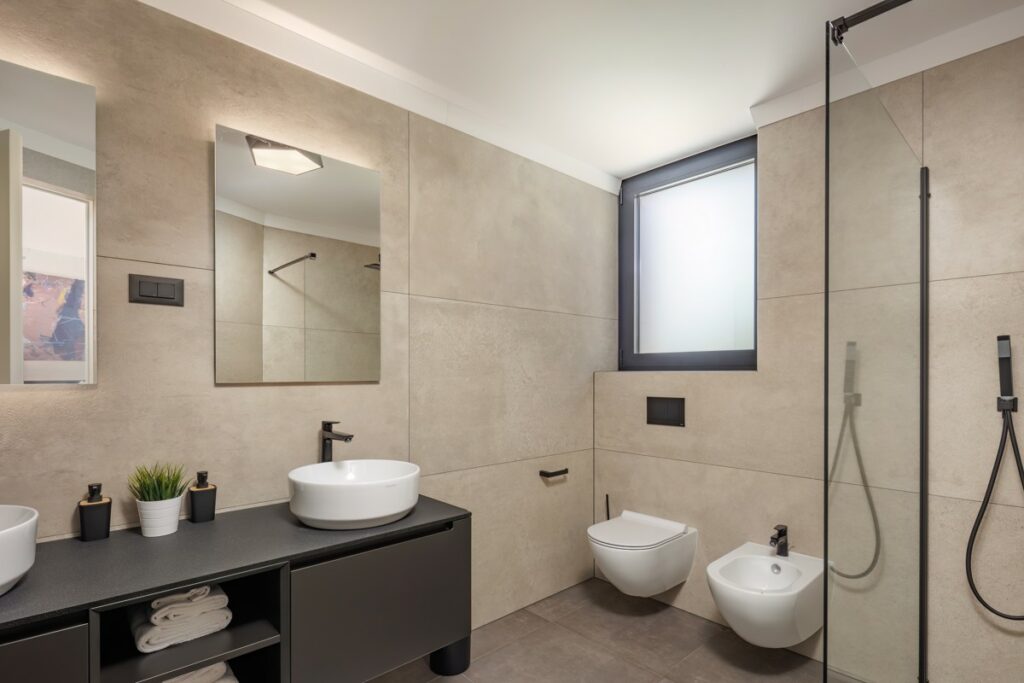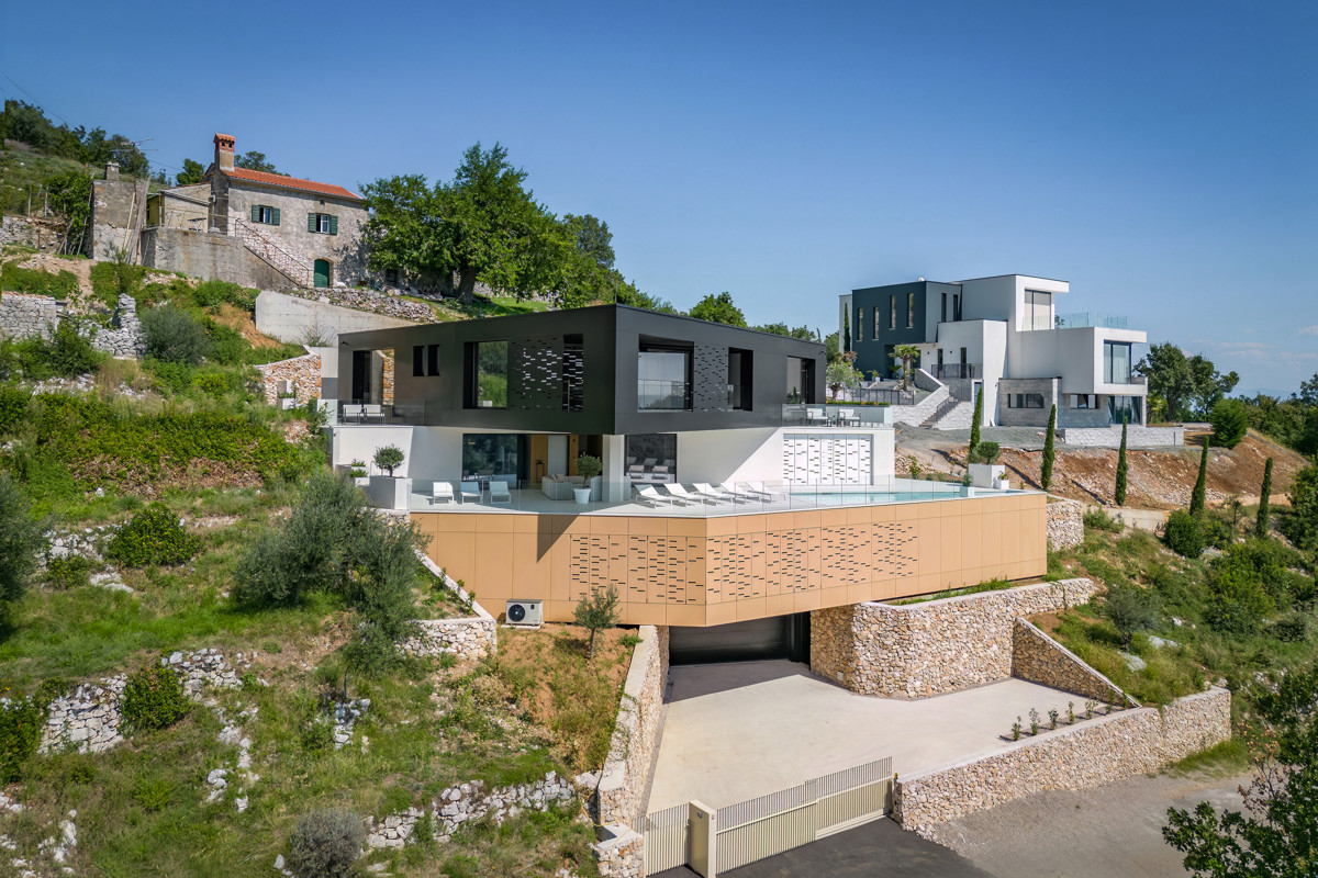 Diese atemberaubende, neu errichtete Villa mit dreieckigem Grundriss und minimalistischem Design erstreckt sich über vier Etagen, die alle durch einen Aufzug verbunden sind. Im Inneren dominieren natürliche Materialien, und mit drei beeindruckenden Terrassen sowie einem Innen- und Außenpool verkörpert sie einen subtilen Luxus, der sich harmonisch in die Umgebung einfügt.