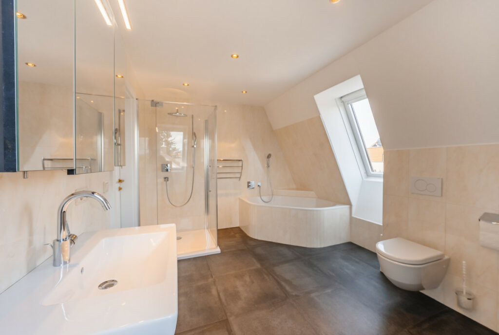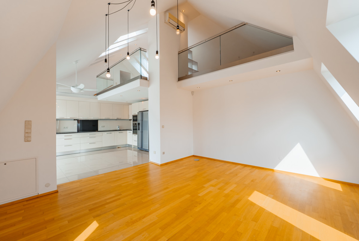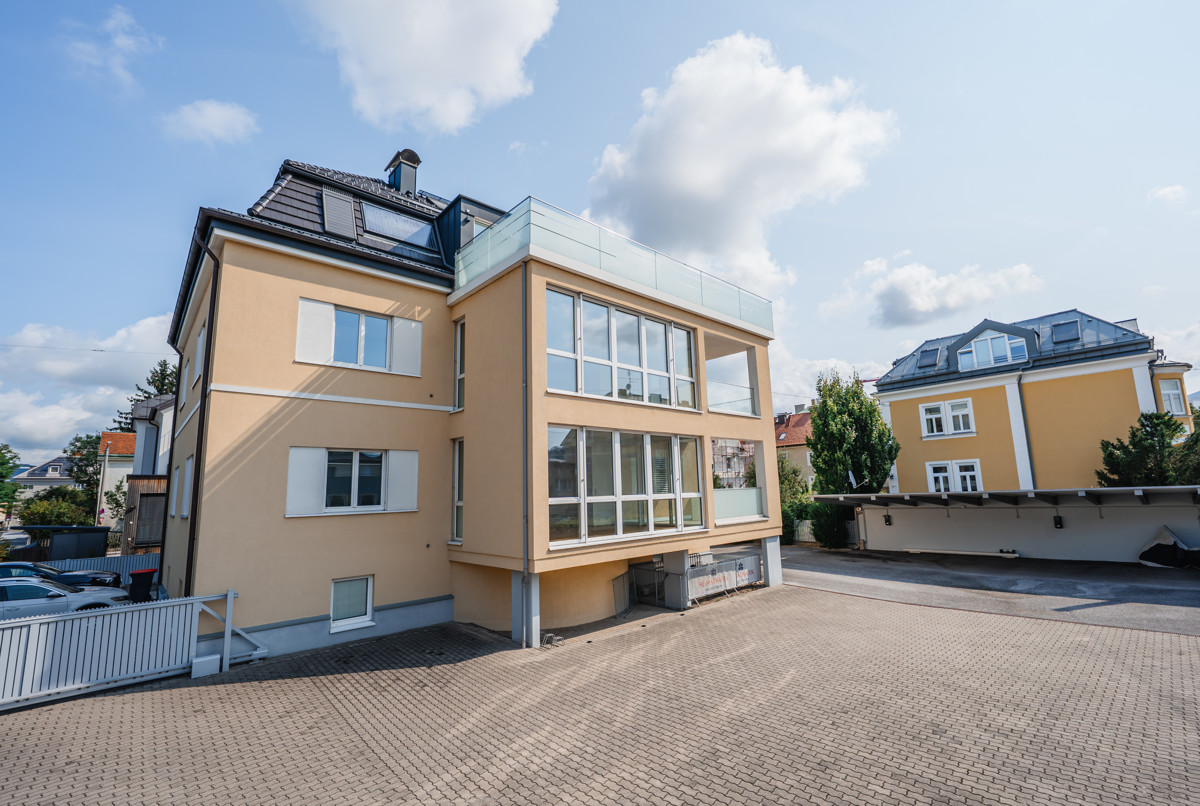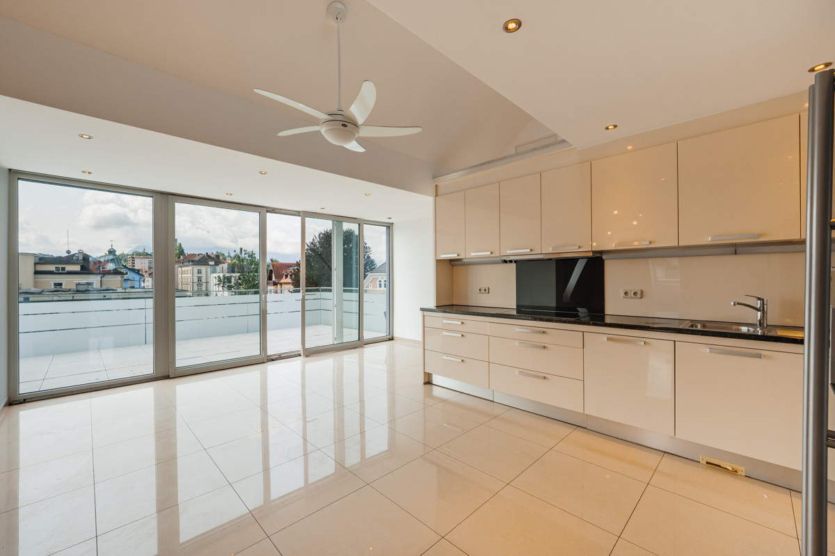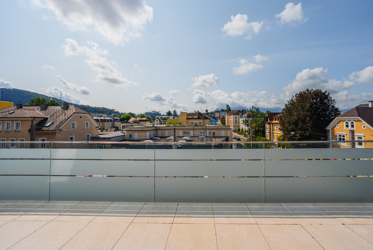 Das Herzstück der Villa ist die exklusive Dachgeschosswohnung mit Galerie. Die Wohnung überzeugt mit einem offenen Wohn-, Ess- und Küchenbereich sowie einer großen Galerie mit fernbedienbaren Dachfenstern, die den großen Wohnbereich mit Licht durchfluten. Zwei Schlafzimmer, ein geräumiges Bad mit Eckbadewanne und einem WC runden das Raumangebot ab. Die nach Süden ausgerichtete 30 m² Terrasse bietet einen traumhaften Ausblick auf das schöne Panorama der Stadt Salzburg und die umliegende Berglandschaft.