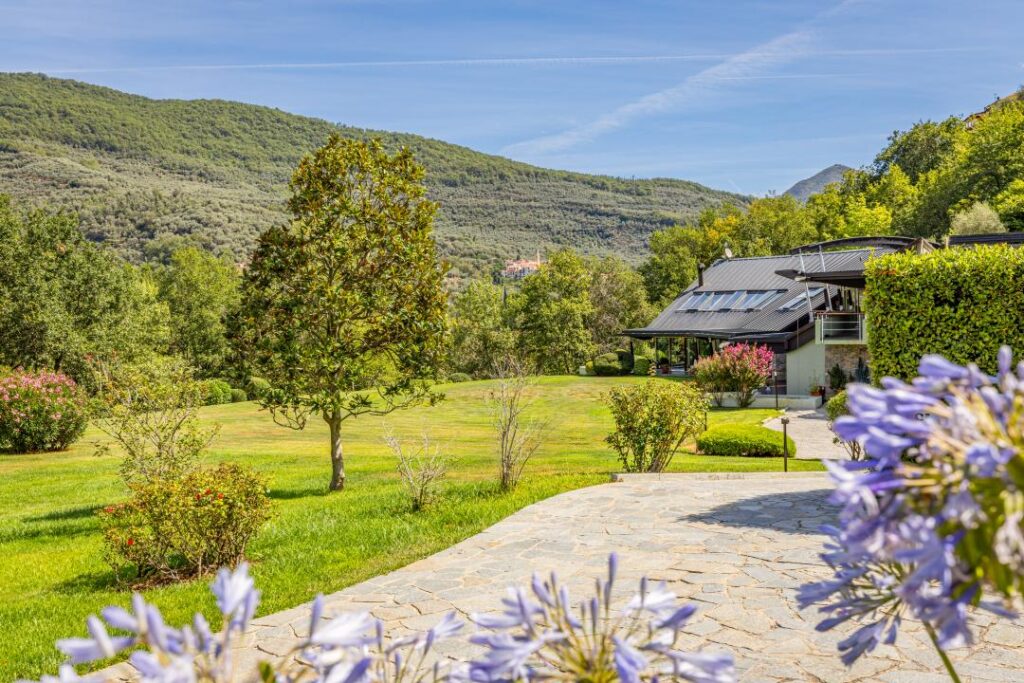 Dieses außergewöhnliche Anwesen ist von majestätischen Olivenbäumen und einem weitläufigen Waldgebiet umgeben, während der große und prächtige Garten mit englischem Rasen absolute Privatsphäre gewährleistet und eine unvergleichliche Atmosphäre der Ruhe schafft. Von dieser privilegierten Lage aus bietet sich ein herrlicher Blick in die Natur.