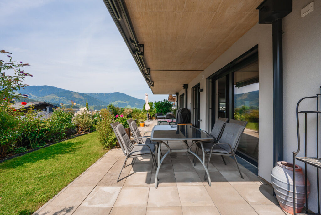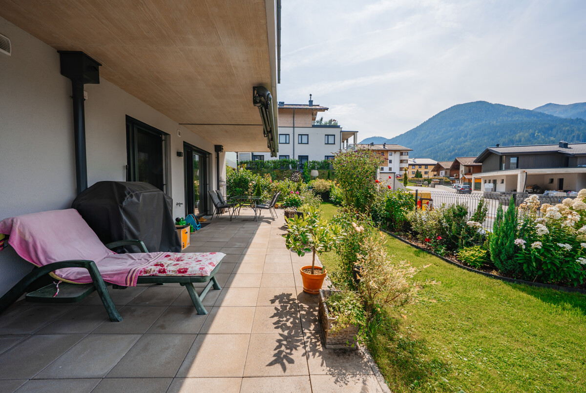 Im Außenbereich können Sie auf Ihrer eigenen, idyllischen Terrasse einen herrlichen Ausblick in die Pongauer Bergwelt sowie auf das Flachauer Skigebiet (Weltcupstrecke) genießen.
