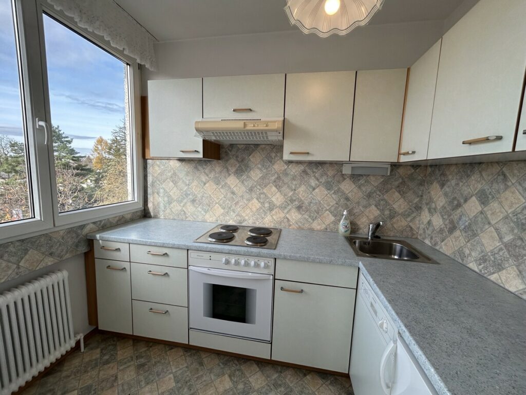 Die funktionstüchtige Küche (Ofen, Backrohr, Geschirrspüler, Dunstabzug) profitiert von einem Fenster, welches Tageslicht hereinlässt und zusätzlich für Frischluft sorgt.