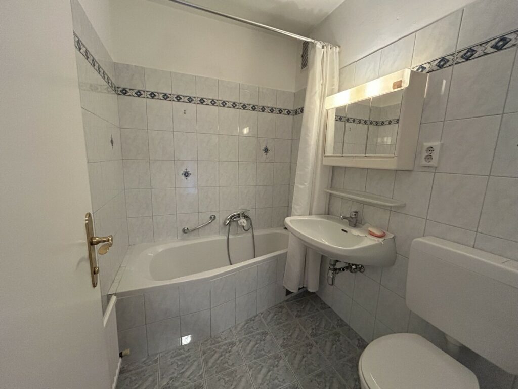 Die gut durchdachte Garconniere wird durch das gepflegte Badezimmer mit Waschbecken, Badewanne und WC abgerundet.