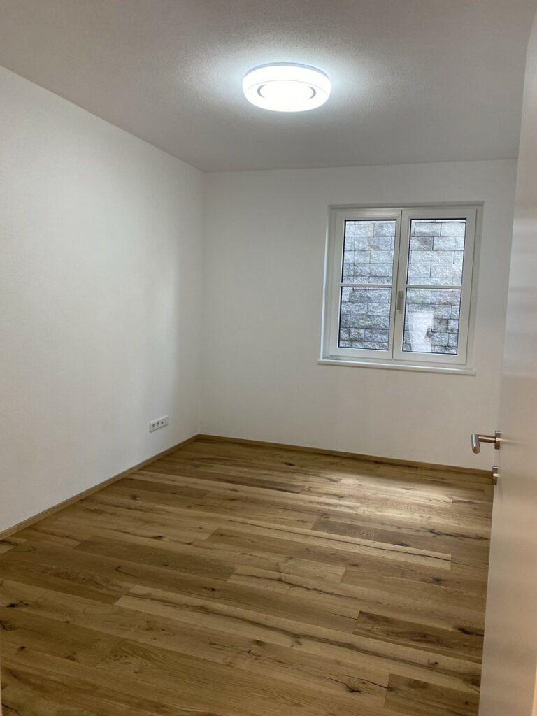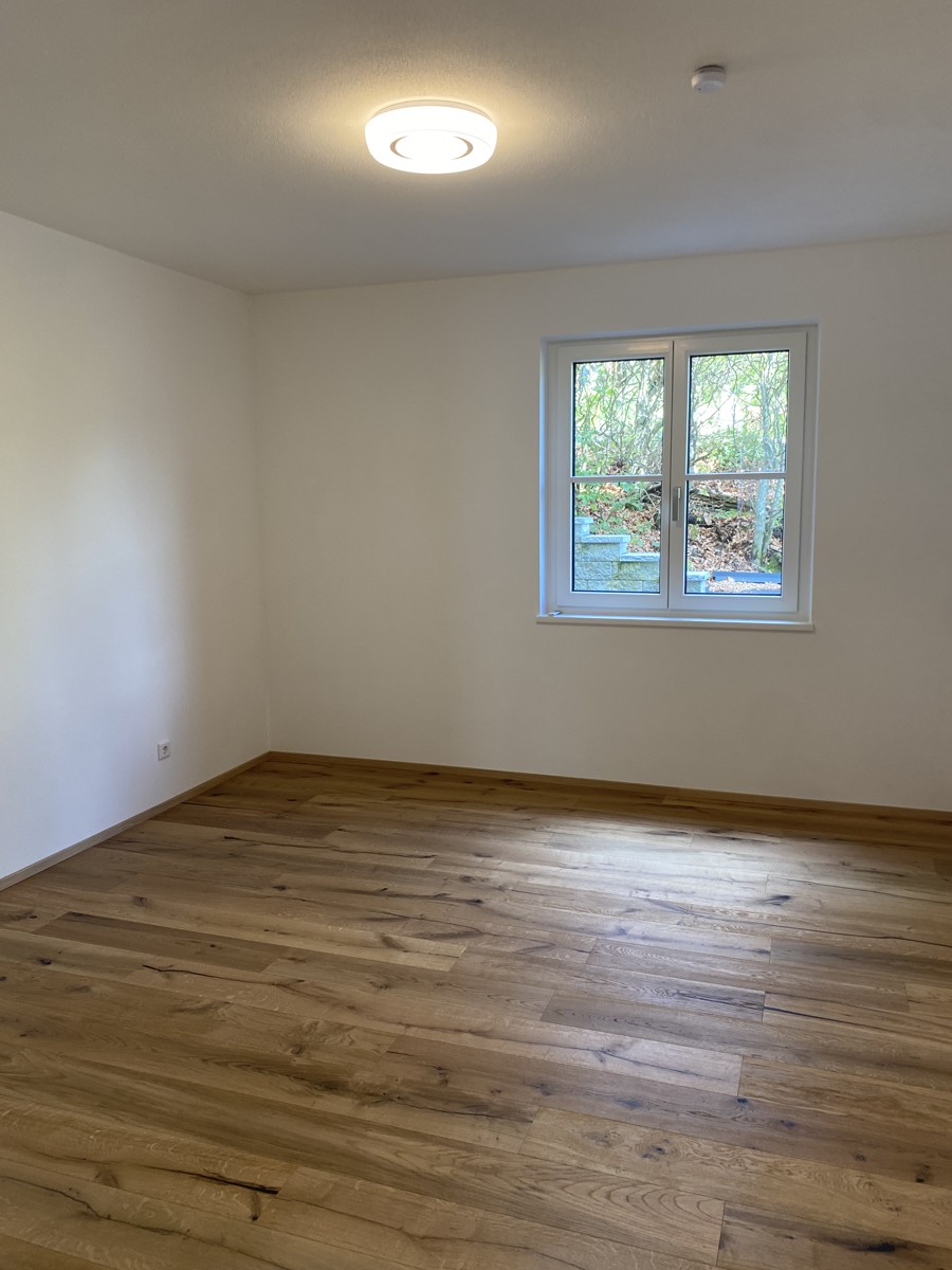 Entlang des Flurs passieren Sie das Arbeits- bzw. Gästezimmer, das Schlafzimmer, das WC und das Badzimmer. Schließlich erreichen Sie den einladenden Küchen-Ess-Wohnbereich. Der herrliche Blick aus den großen, bodentiefen Panoramafenstern verspricht entspanntes Wohnen mit Blick in die wunderschöne Natur. Ein Carportstellplatz ist im Preis inbegriffen.