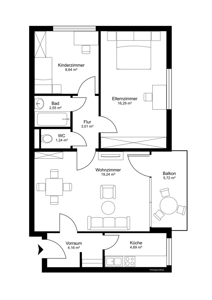 Geeignet als Start-up-Wohnung oder für junge Familien (3-Personen-Haushalt)
