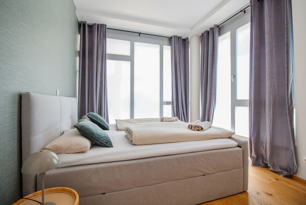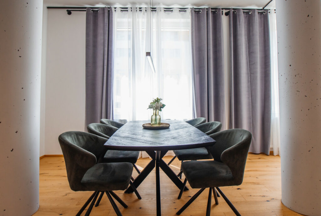 Das Appartement überzeugt durch ein durchdachtes Wohnkonzept, das speziell auf anspruchsvolle Gäste zugeschnitten ist, die auch im Urlaub Wert legen auf ein modernes Ambiente. Die loftartige Raumhöhe sorgt für ein offenes, luftiges Lebensgefühl, während der edle Echtholz-Eichenboden stilvolle Eleganz und Wohnwärme vermittelt.