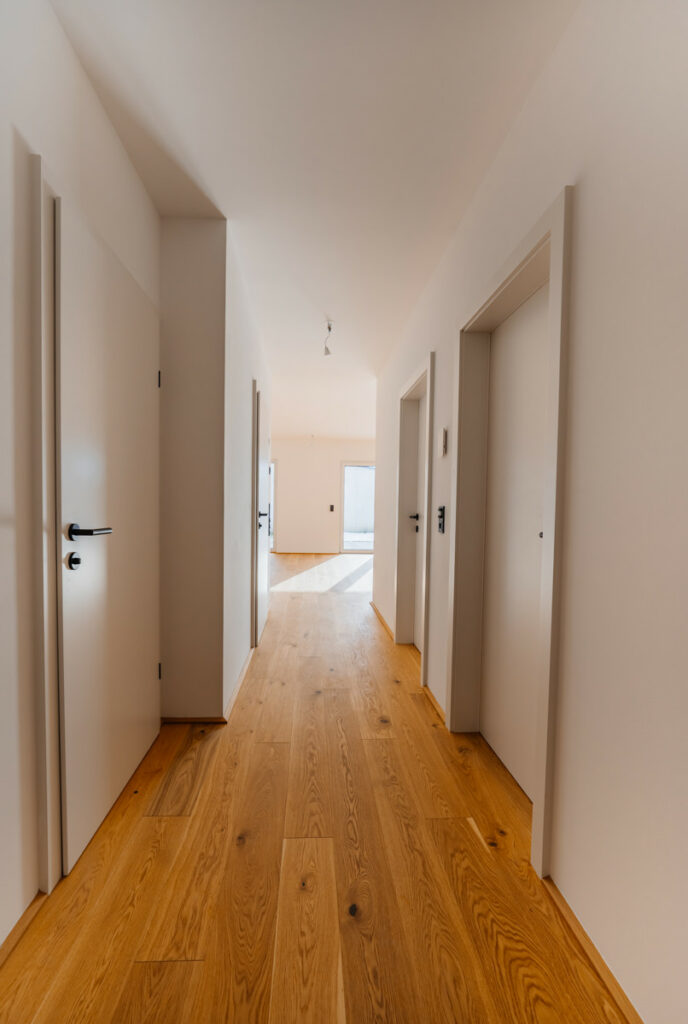 Eine der besonderen Vorzüge dieses Projekts sind die Erdgeschoss- und Untergeschosswohnungen, die mit privaten Gärten zwischen 37 und 133 m² Fläche ausgestattet sind. Alle anderen Wohnungen verfügen über einen Balkon und/oder eine Terrasse mit Größen von 10 bis 68 m². Diese idyllischen Außenbereiche bieten einen persönlichen Rückzugsort im Freien, um die angenehme alpine Luft zu genießen, gesellige Momente zu erleben oder auch einfach nur zu entspannen.
