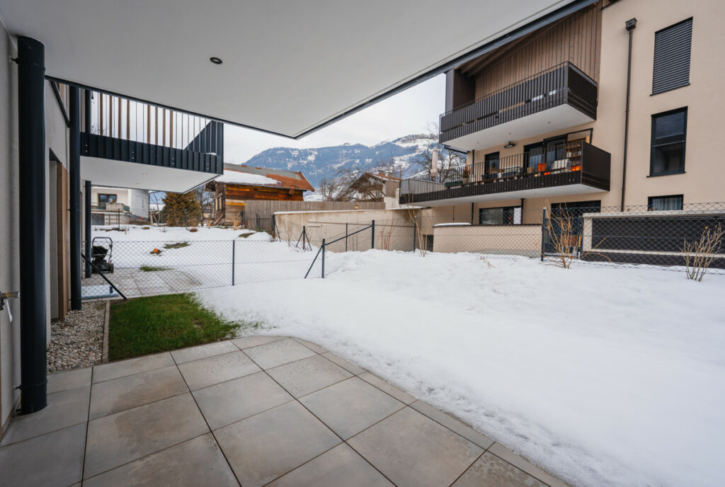 Eine der besonderen Vorzüge dieses Projekts sind die Erdgeschoss- und Untergeschosswohnungen, die mit privaten Gärten zwischen 37 und 133 m² Fläche ausgestattet sind. Alle anderen Wohnungen verfügen über einen Balkon und/oder eine Terrasse mit Größen von 10 bis 68 m². Diese idyllischen Außenbereiche bieten einen persönlichen Rückzugsort im Freien, um die angenehme alpine Luft zu genießen, gesellige Momente zu erleben oder auch einfach nur zu entspannen.