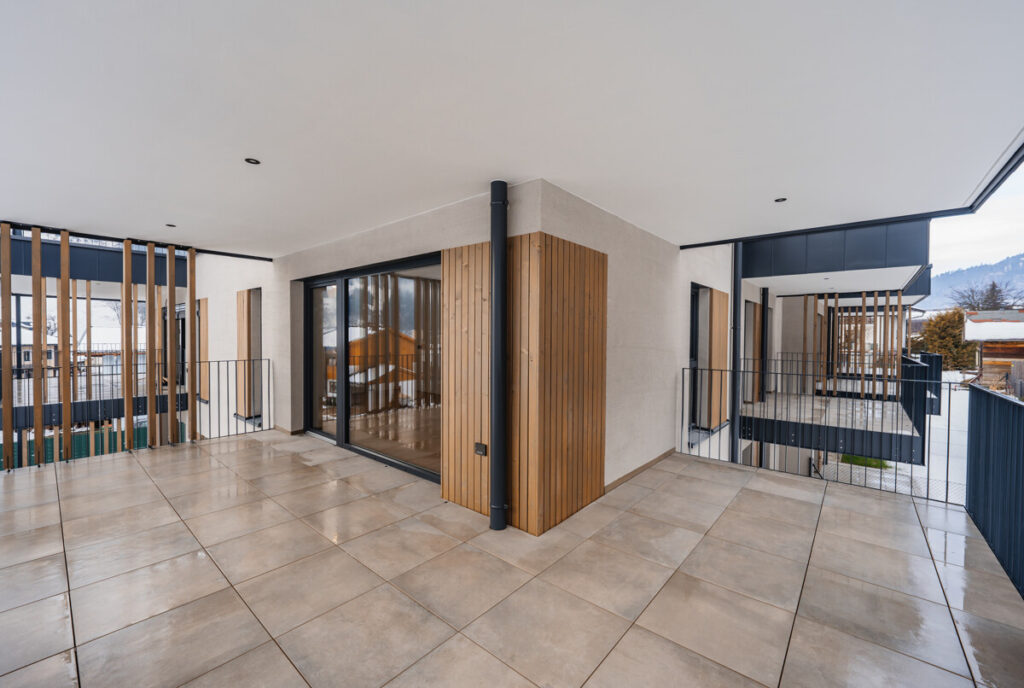 Eine der besonderen Vorzüge dieses Projekts sind die Erdgeschoss- und Untergeschosswohnungen, die mit privaten Gärten zwischen 37 und 133 m² Fläche ausgestattet sind. Alle anderen Wohnungen verfügen über einen Balkon und/oder eine Terrasse mit Größen von 10 bis 68 m². Diese idyllischen Außenbereiche bieten einen persönlichen Rückzugsort im Freien, um die angenehme alpine Luft zu genießen, gesellige Momente zu erleben oder auch einfach nur zu entspannen.