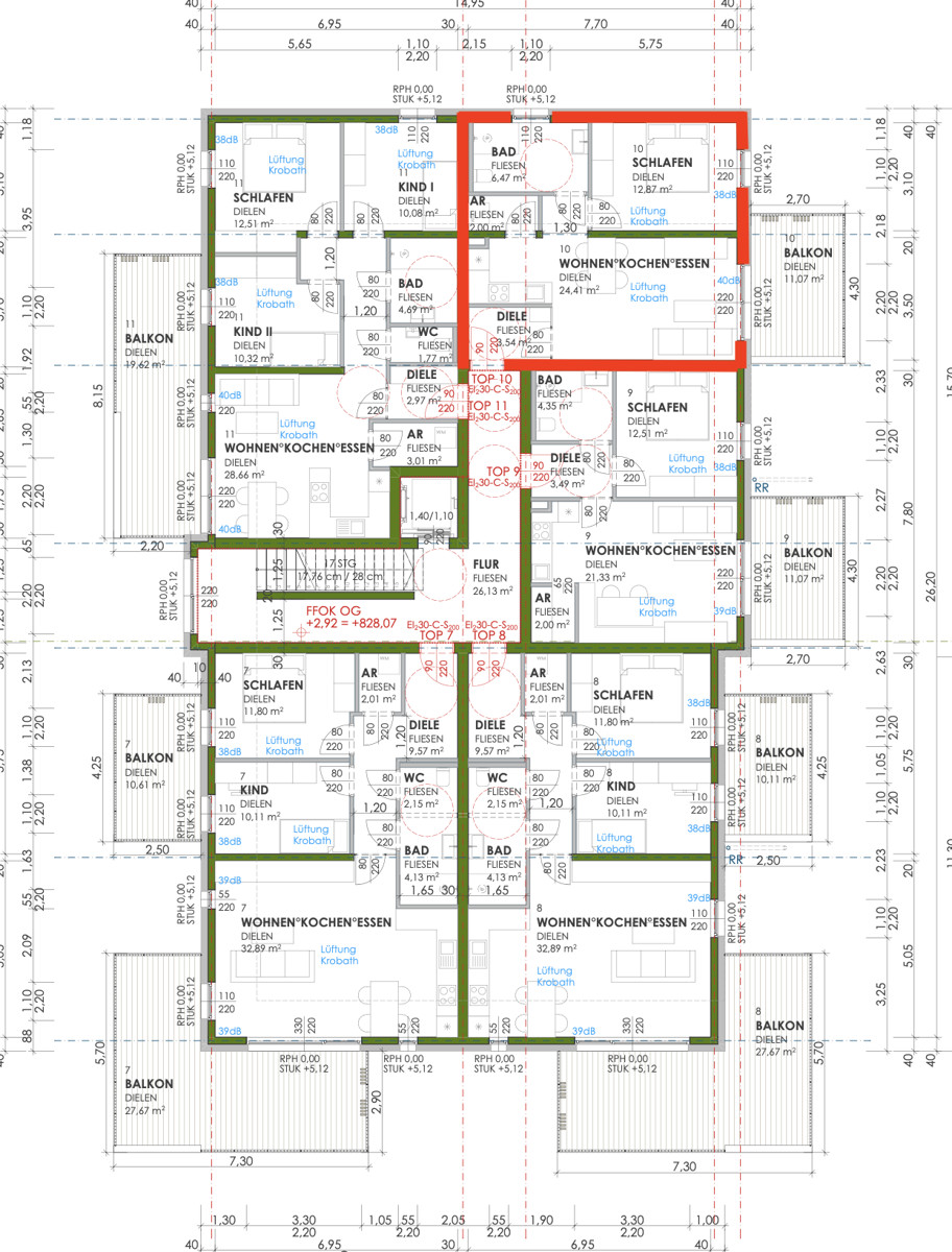Die Wohnung Top 10 verfügt mit einer Wohnfläche von ca. 49 m² über ein Schlaf- und ein Badezimmer. Sie befindet sich im 1. Obergeschoss und hat einen ca. 10 m² großen Balkon.