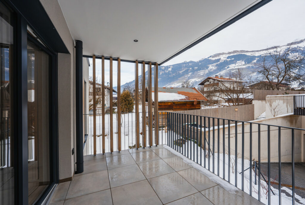 Eine der besonderen Vorzüge dieses Projekts sind die Erdgeschoss- und Untergeschosswohnungen, die mit privaten Gärten zwischen 37 und 133 m² Fläche ausgestattet sind. Alle anderen Wohnungen verfügen über einen Balkon und/oder eine Terrasse mit Größen von 10 bis 68 m². Diese idyllischen Außenbereiche bieten einen persönlichen Rückzugsort im Freien, um die angenehme alpine Luft zu genießen, gesellige Momente zu erleben oder auch einfach nur zu entspannen.
