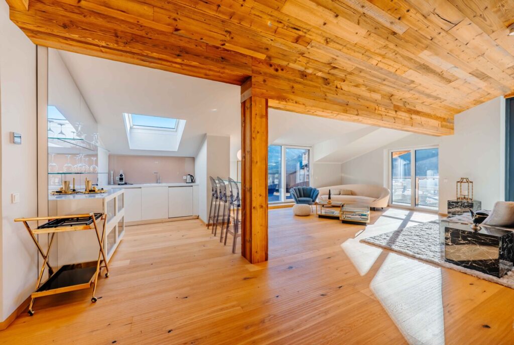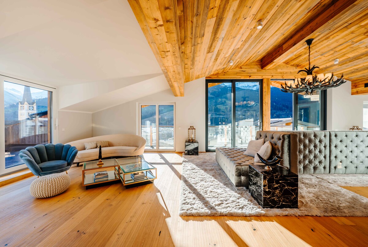 Dieses Penthouse Wohnung in Bad Hofgastein begeistert mit rund 400 m² Wohnfläche, einem durchdachten offenen Raumkonzept und einer Atmosphäre, die gleichzeitig modern, gemütlich und beeindruckend ist.