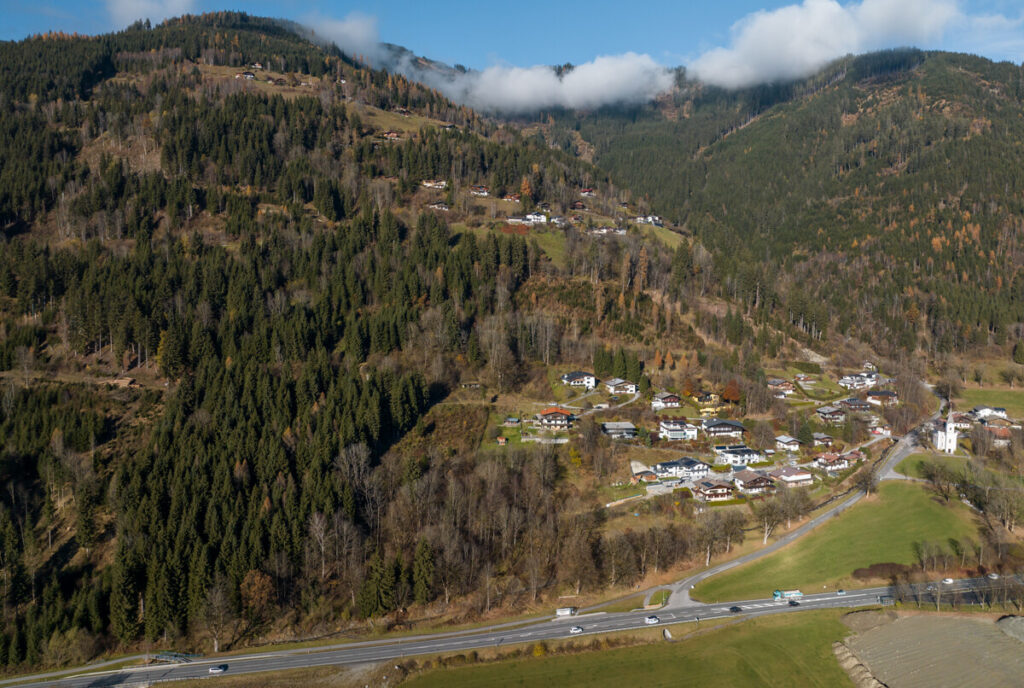Das Grundstück liegt in einer sonnigen Hanglage in dem Ortsteil Aufhausen in Piesendorf.