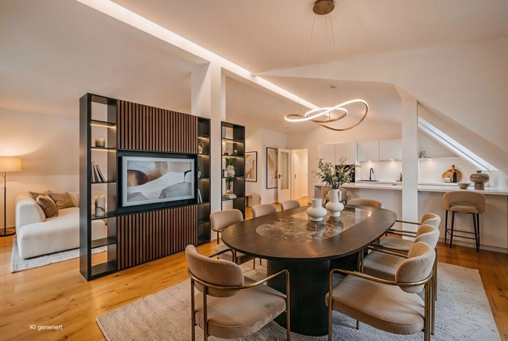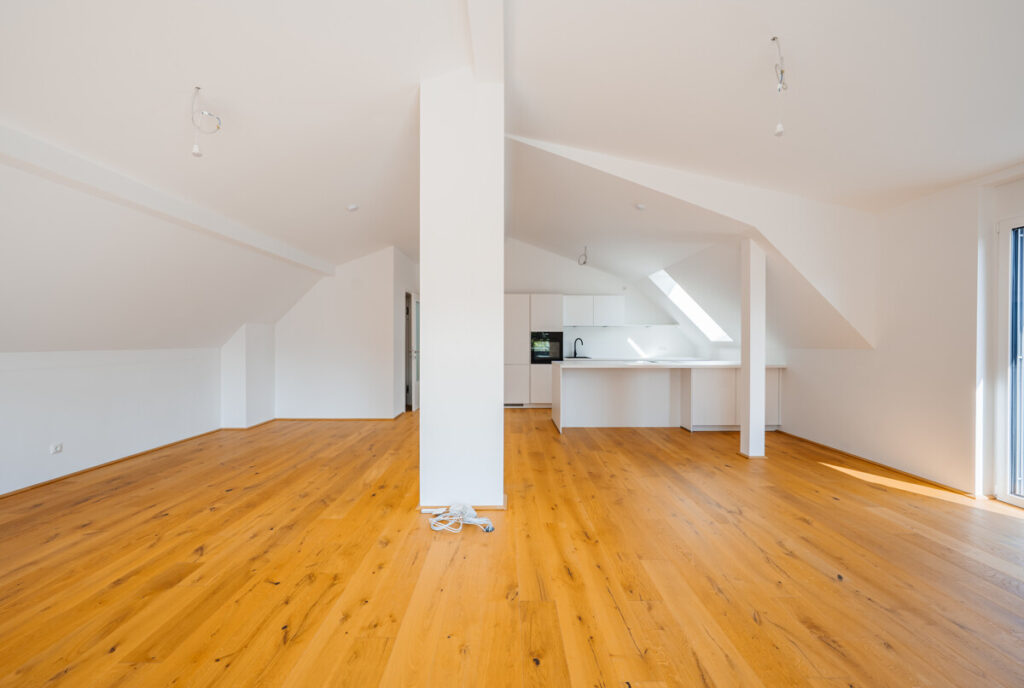 Die Wohnung beeindruckt durch ihre luftige Architektur mit bis zu drei Meter hohen Decken, eleganten Dachschrägen und einem durchdachten Grundriss, der den Wohnraum optimal nutzt. Direkt mit dem Lift gelangen Sie bequem und barrierefrei von der Tiefgarage in Ihre private Rückzugsoase.
