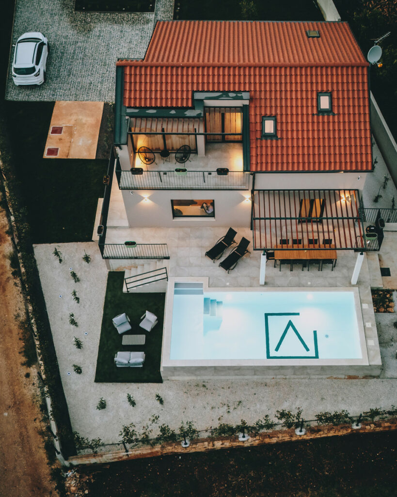 Der Außenbereich ist ein wahres Highlight: Eine große Terrasse umgibt den wunderschönen Außenpool, perfekt für entspannte Stunden unter der kroatischen Sonne. Darüber hinaus stehen Ihnen eine Sauna und Fitnessstudio zur Verfügung, um Körper und Geist zu verwöhnen.