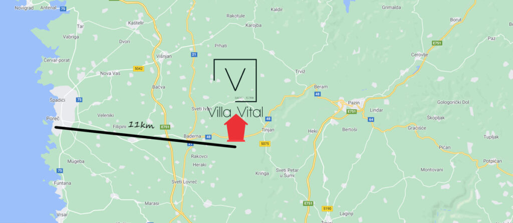 Die Immobilie befindet sich in einer sehr ruhigen und schönen Lage ca. 12km von Porec entfernt in Basici/Jakovici und hat einen fantastischen Blick auf das Land.