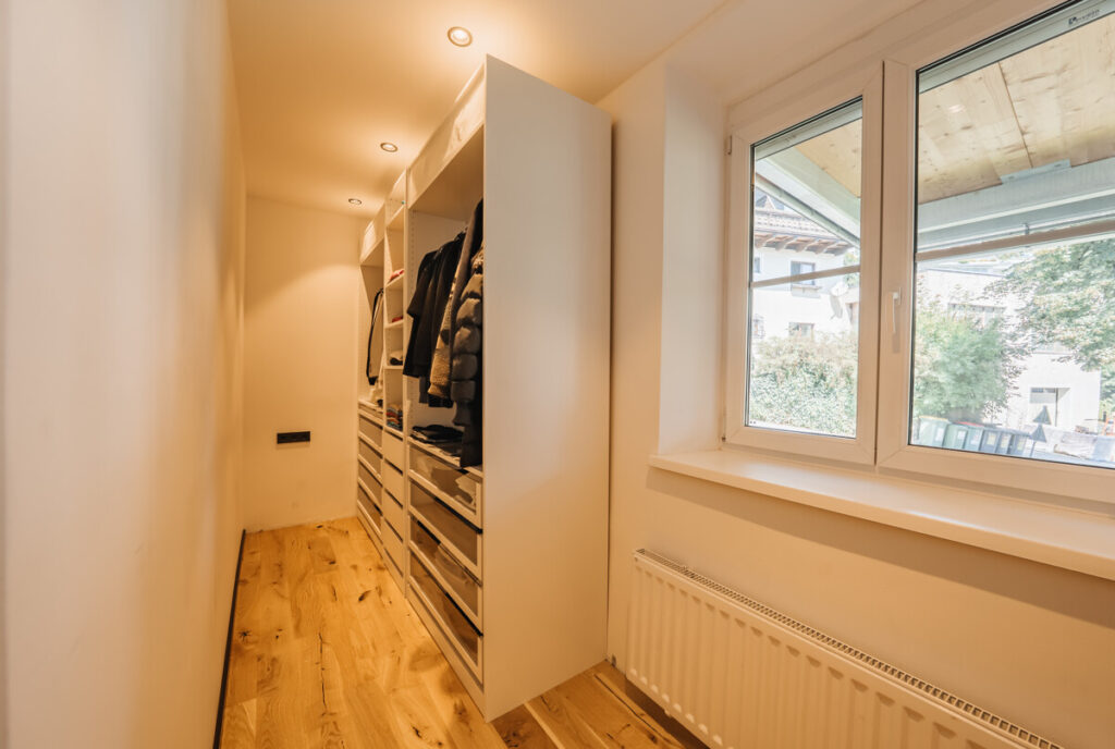 Im Inneren überzeugt die Wohnung durch eine klare Raumaufteilung und eine angenehme Wohnatmosphäre. Zwei Schlafzimmer bieten ausreichend Platz für Ruhe und Erholung, ein separates Ankleidezimmer sorgt für Ordnung und Stauraum. Das Wohnzimmer bietet reichlich Platz für gesellige Momente – mit der reizvollen Möglichkeit, durch einen Balkon- oder Terrassenanbau zusätzlichen Freiraum zu gewinnen mit direktem Blick zum See.