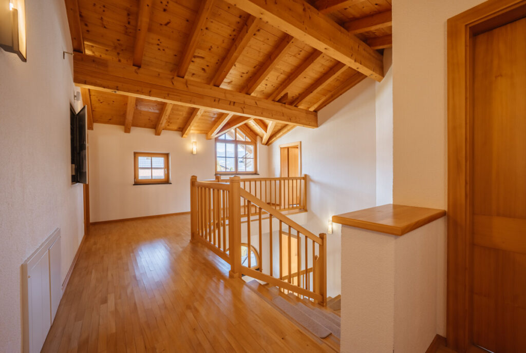 Auch konstruktiv erfüllt die Villa höchste Ansprüche und steht für Langlebigkeit sowie solide Bauqualität. Die Ausführung in massiver Ziegelbauweise mit Stahlbeton-Kellergeschoss und tragenden Decken bildet die Grundlage für eine beständige Substanz. In Verbindung mit dem klassischen Satteldach und dem sichtbaren Dachstuhl entsteht eine gelungene Symbiose aus traditioneller Architektur und zeitgemäßer Bauweise. Die Fassade kombiniert Putz mit stilvollen Holzelementen, während edle Parkett- und Fliesenböden sowie hochwertige Holz-Alu-Fenster mit Isolierverglasung das anspruchsvolle Ausstattungsniveau widerspiegeln. Für angenehme Wärme sorgt eine moderne Gaszentralheizung, ergänzt durch einen Kachelofen, der eine besonders wohnliche Atmosphäre schafft.
