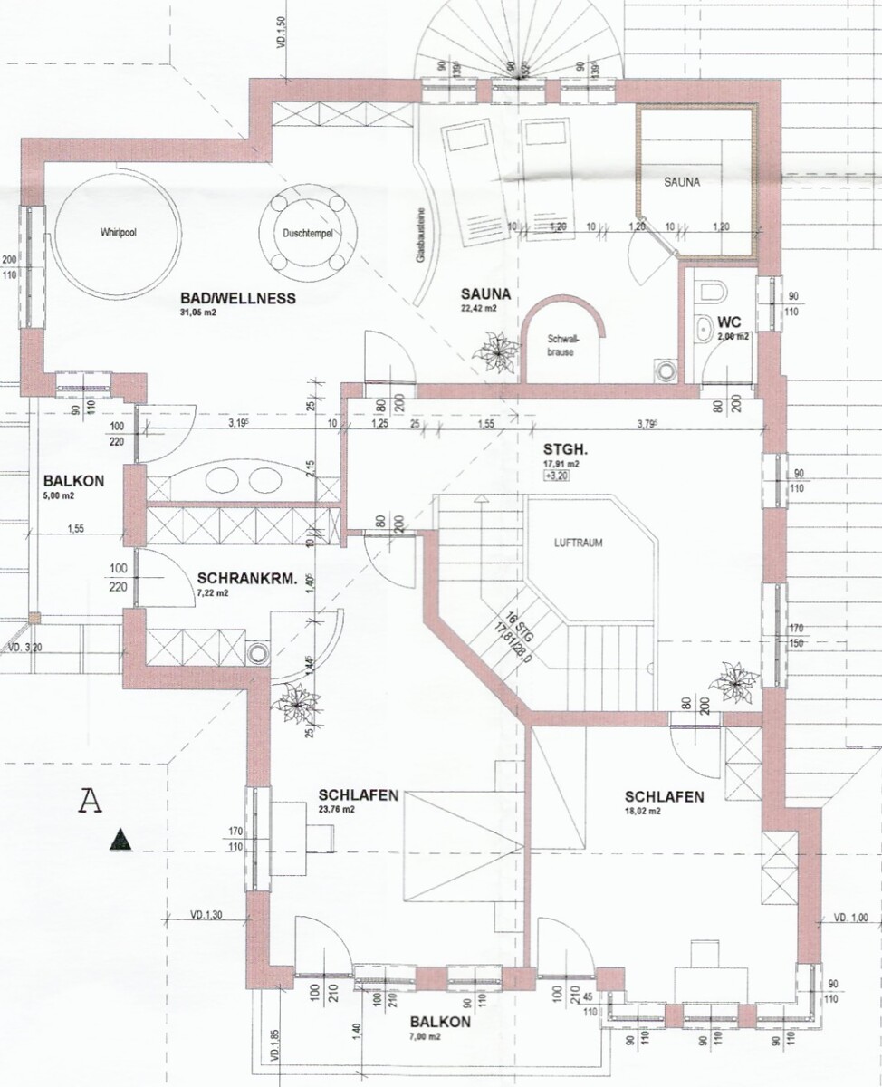 Im Obergeschoss erwarten Sie zwei Schlafzimmer, eines davon mit eigener Ankleide, sowie ein ganz besonderes Highlight dieser Immobilie: ein exklusiv gestalteter Wellnessbereich, der höchsten Ansprüchen gerecht wird. Mit Sauna, Whirlpool, Regenwalddusche und Badewanne bietet dieser Bereich ein privates Spa-Erlebnis auf höchstem Niveau. Hochwertige Materialien, eine durchdachte Raumgestaltung und ein stimmiges Ambiente machen diesen Bereich zu einem luxuriösen Rückzugsort, der Entspannung und Erholung in den eigenen vier Wänden neu definiert.