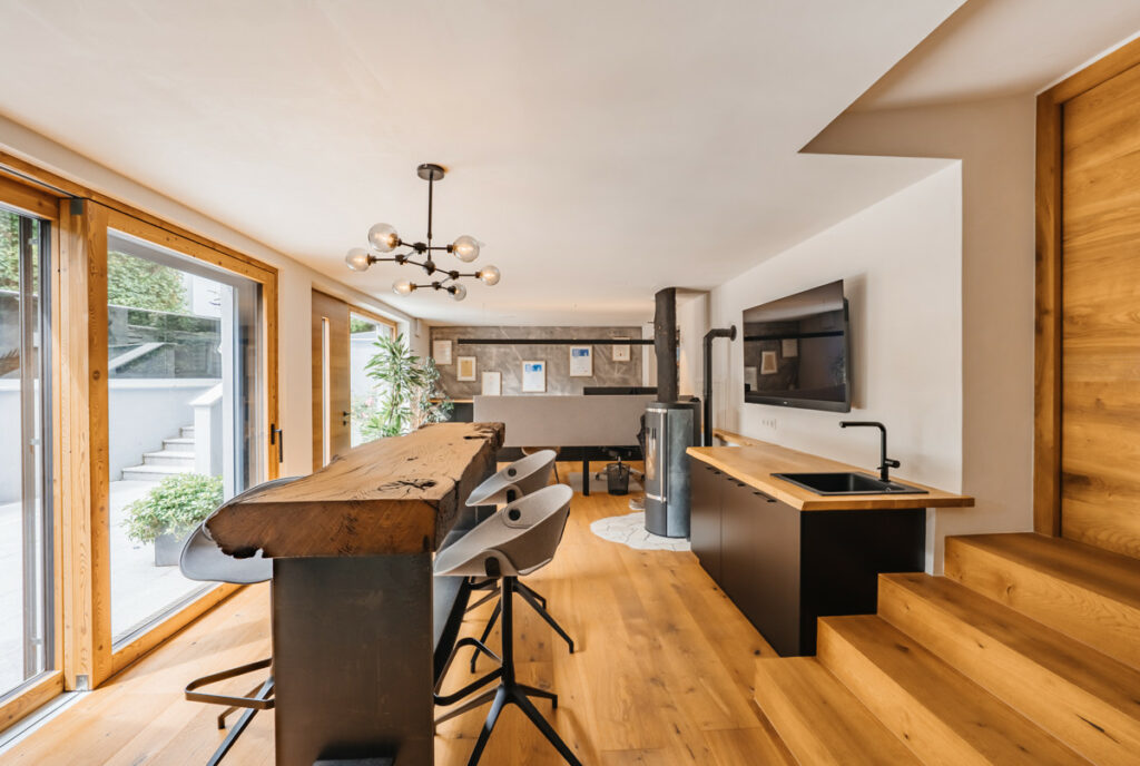 Diese bemerkenswerte Immobilie kombiniert elegantes Wohnen, vielseitiges Arbeiten und erstklassige Lebensqualität in einer ruhigen Nebenstraße in der Nähe des Stadtzentrums von Saalfelden. Das bestehende Gebäude aus dem Jahr 1956 wurde in den Jahren 2023 und 2024 umfassend renoviert, erweitert und technisch modernisiert. Dies umfasst unter anderem einen Anbau, den Ausbau des Dachgeschosses sowie zahlreiche durchdachte Details.