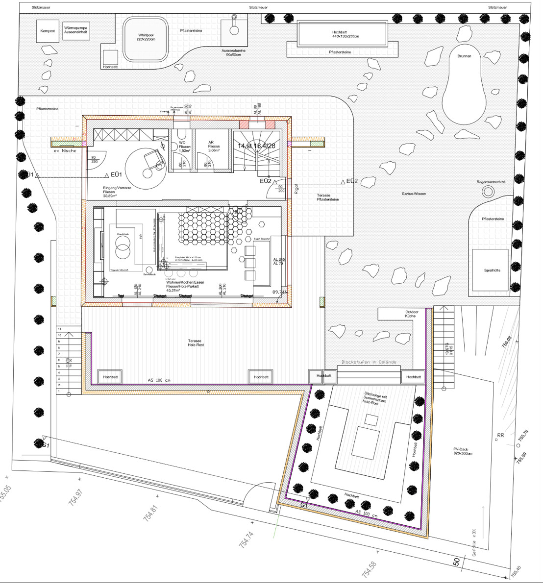 Zusätzlich zu dem großzügigen Raumangebot im Innenbereich gibt es auch im Außenbereich angenehm viel Platz. Der liebevoll angelegte Garten ist mit Hochbeeten ausgestattet, einem urigen Bachlauf, einem Regenwassertank, einem Whirlpool zum Relaxen, einem Spielbereich für Kinder, einer Kletterwand sowie einer Außendusche und einer Outdoor-Küche, die bei sommerlichen Temperaturen eine perfekte Gelegenheit bietet, um laue Sommernächte mit einem leckeren Abendessen zu genießen.
