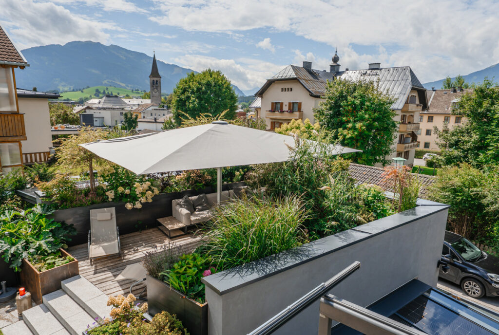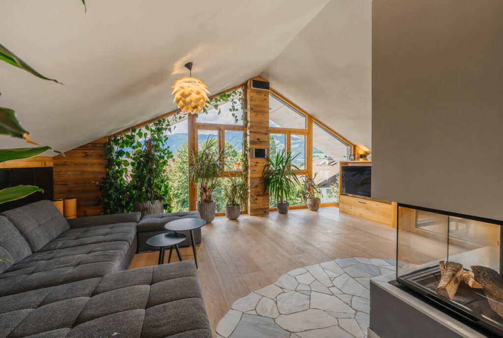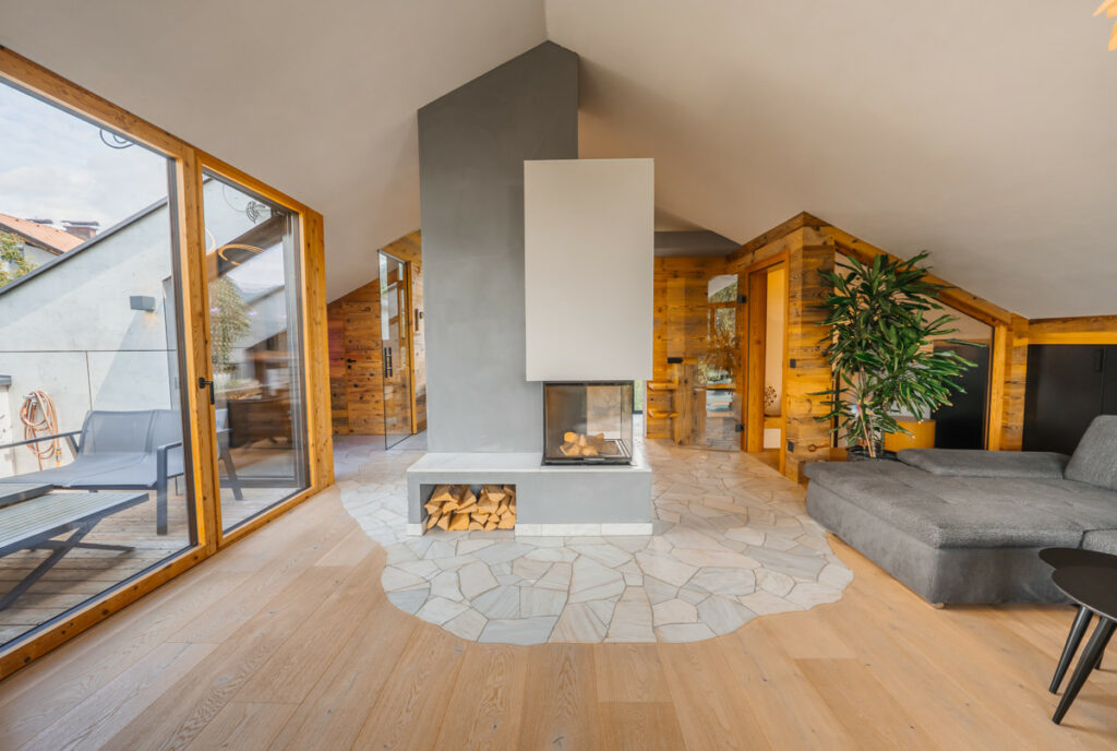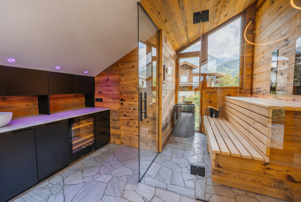 Das wunderschöne „Wellness-Dachgeschoss“ begeistert mit einer entspannenden Ausstattung eines offenen Kamins, einer Sauna mit Dampf- und Infrarotfunktion, einer Dusche mit Saunakübel, einer Teeküche, die für Erfrischungen sorgt und einem Bad. Die idyllische Dachterrasse verwöhnt Sie mit einem herrlichen Panoramablick auf das Kitzsteinhorn, den Biberg und das Steinerne Meer.