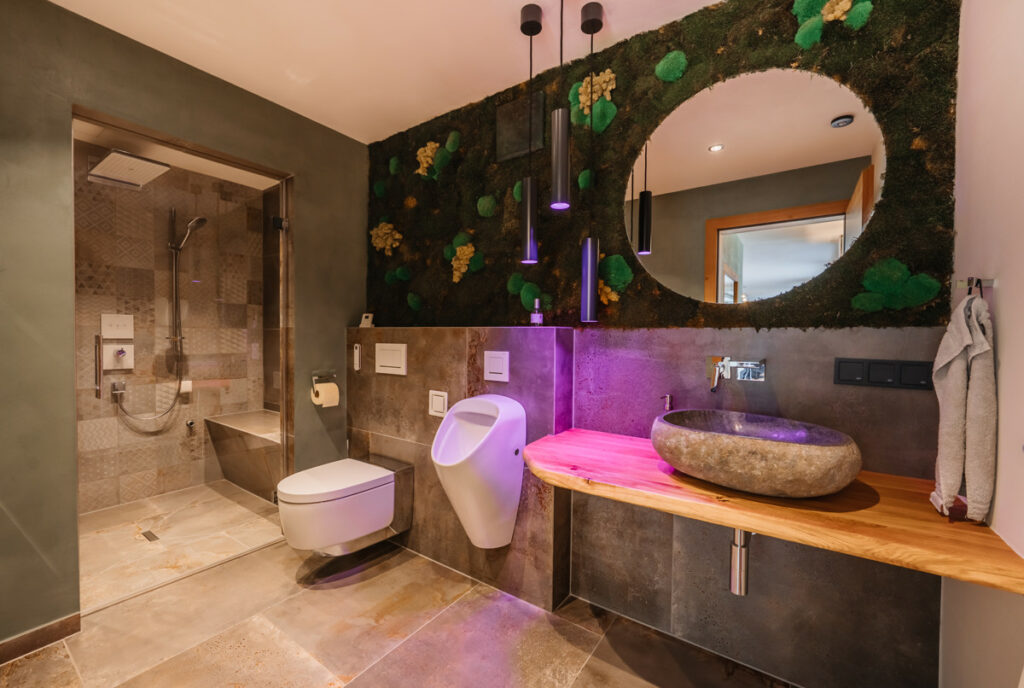 Es gibt sowohl eine angenehme Fußbodenheizung als auch eine Wandheizung, die an kälteren Tagen für eine heimelige, warme Atmosphäre sorgen.