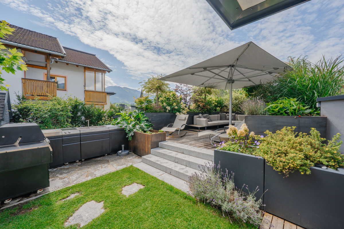 Zusätzlich sorgen moderne Smart-Home-Elemente, eine PV-Anlage, ein Rasenroboter sowie hochwertige Materialien für die Langlebigkeit und Modernität der Wohneinheit.