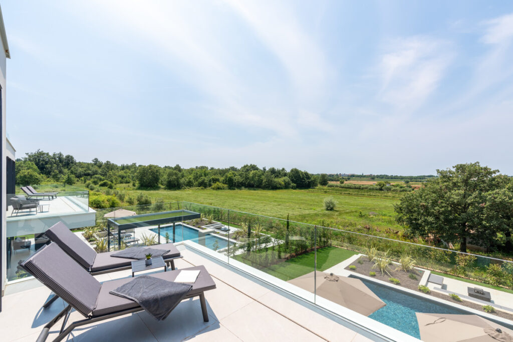Diese beeindruckende, moderne Villa besticht durch ihren privaten Pool, eine Sauna, einen atemberaubenden Meerblick und eine großzügige Dachterrasse. All dies befindet sich nur fünf Minuten vom Stadtzentrum von Poreč und den malerischen Stränden entfernt.