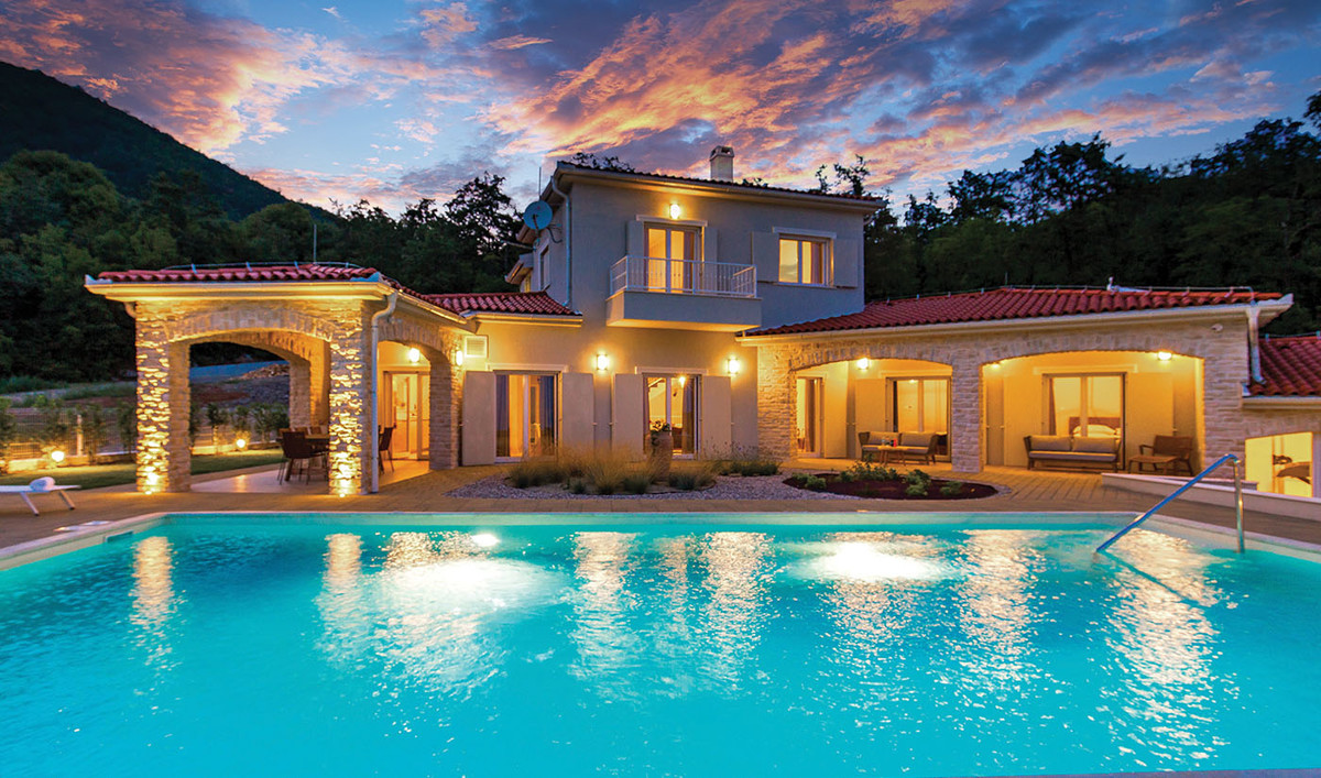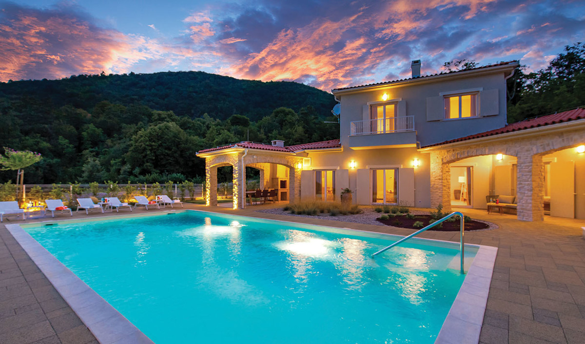 Die „Villas Natura“ verbindet moderne Architektur, modernste Technik und luxuriöses Design. Aufgrund der Merkmale der Architektur, des umweltfreundlichen Baus, der fortschrittlichen Technologie, der Solarheizung und der Unterkunft in der Natur an der Grenze des Naturparks Učka wurden alle 5 Villen Natura Villas genannt. Die Villen erstrecken sich auf Grundstücken von 1.000 bis 1.200 m². Bei einer Wohnfläche von ca. 400 m² ist so Platz für 4-5 Schlafzimmer, wovon jedes einzelne mit einem eigenen Bad und einem Ankleideraum ausgestattet ist.