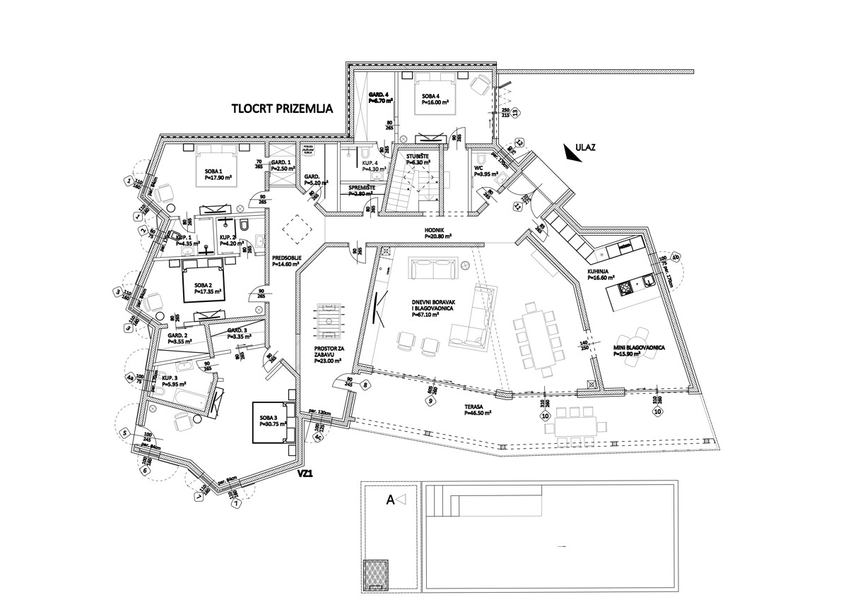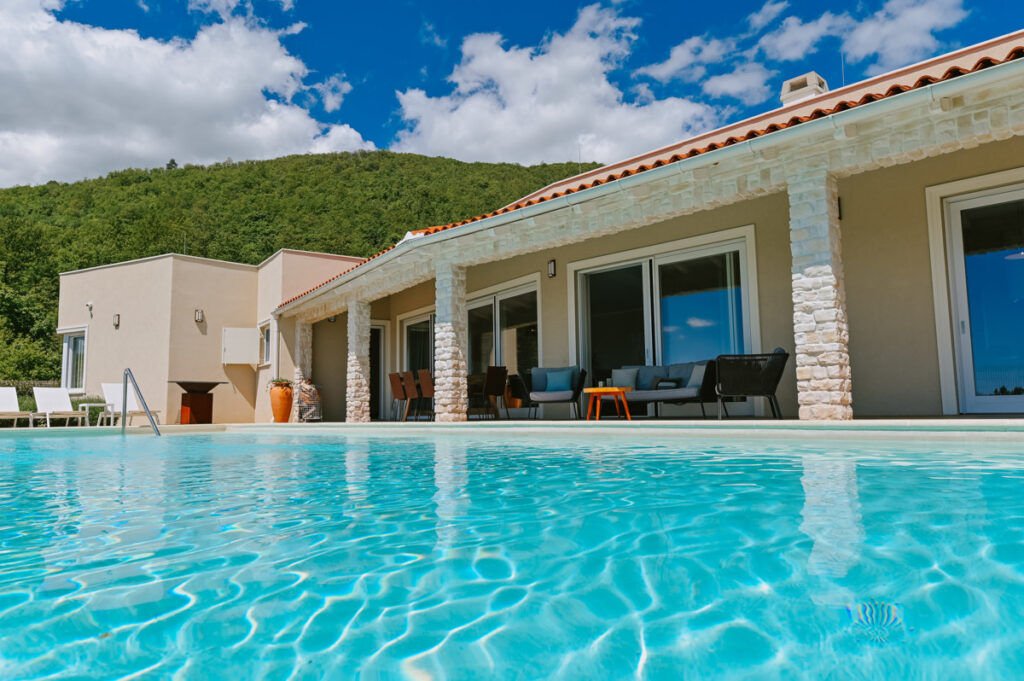 Die „Villas Natura“ verbindet moderne Architektur, modernste Technik und luxuriöses Design. Aufgrund der Merkmale der Architektur, des umweltfreundlichen Baus, der fortschrittlichen Technologie, der Solarheizung und der Unterkunft in der Natur an der Grenze des Naturparks Učka wurden alle 5 Villen Natura Villas genannt. Die Villen erstrecken sich auf Grundstücken von 1.000 bis 1.200 m². Bei einer Wohnfläche von ca. 400 m² ist so Platz für 4-5 Schlafzimmer, wovon jedes einzelne mit einem eigenen Bad und einem Ankleideraum ausgestattet ist.