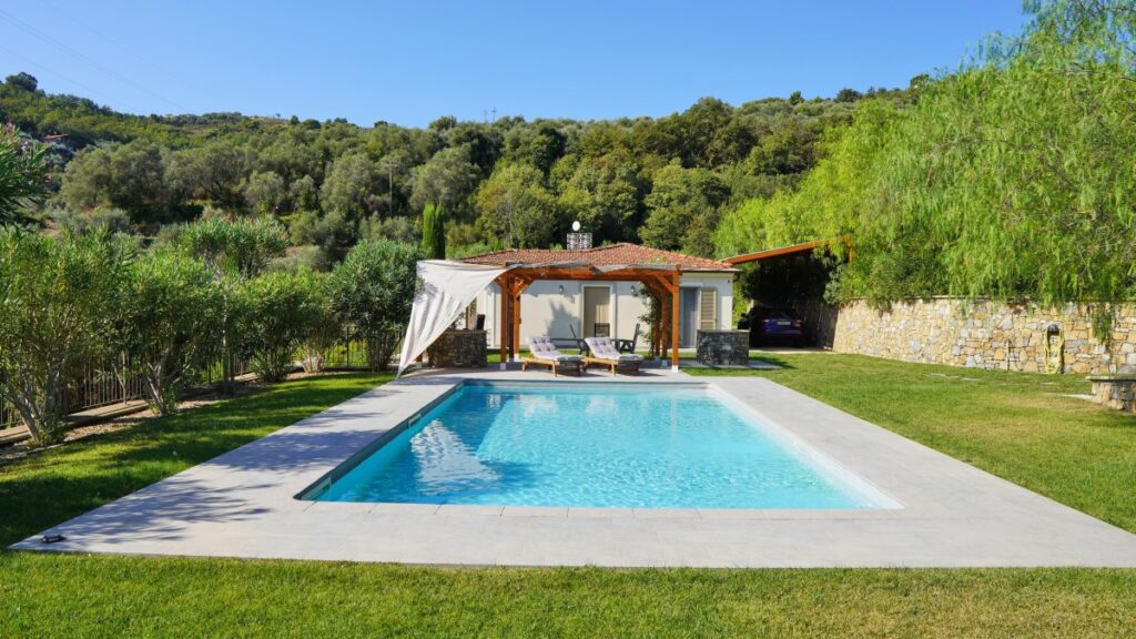 Die Villa ist umgeben von einem Traumgarten mit mediterranen Pflanzen, Bäumen und einem Swimmingpool; in dieser geschützten und schönen Oase kann man die Seele baumeln lassen. Die Villa verfügt außerdem über einen produktiven Olivenhain (ca. 120 Liter Öl), der mit mehreren Brunnen ausgestattet ist und der umliegenden Landschaft eine authentische und typisch ligurische Note verleiht.