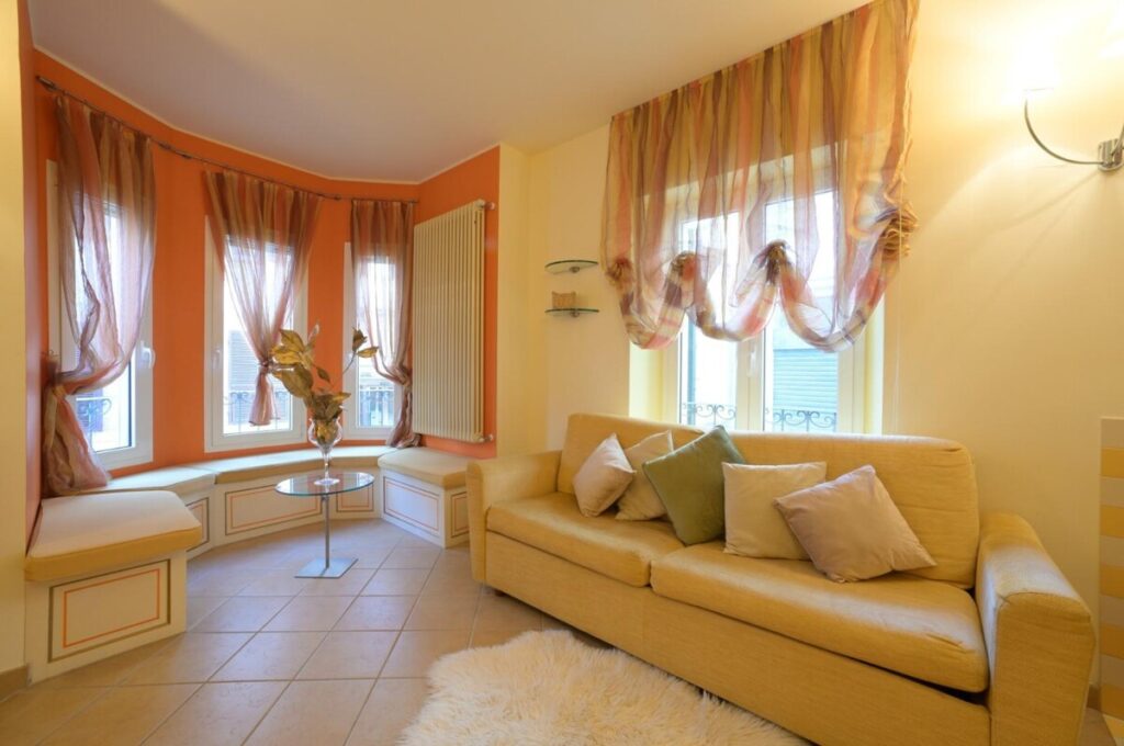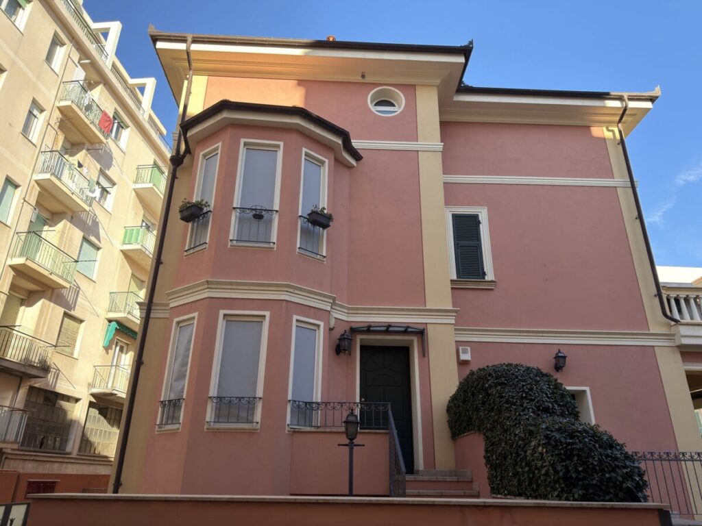 Diese zum Verkauf stehende 2-Zimmer-Wohnung Ligurien in Alassio erstreckt sich über zwei Etagen: Im Obergeschoss befindet sich ein Wohnzimmer mit offener Küche und einem Erkerfenster, im Untergeschoss befinden sich Schlafzimmer und Badezimmer. Zum Anwesen gehört außerdem ein ca. 80 qm großer Innenhof mit Zufahrt – ein privater Bereich, der den Wohnkomfort erhöht.